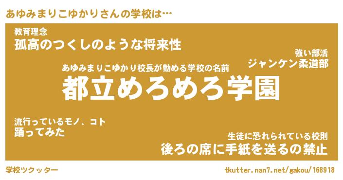| 男性向けラノベタイトル風あだ名 | 『あゆみまりこゆかりの憂鬱』 |