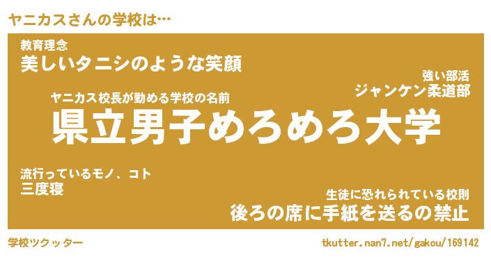 | 意味不明あだ名 | 『ペロリンヤニカス』『永久保存ヤニカス』 |