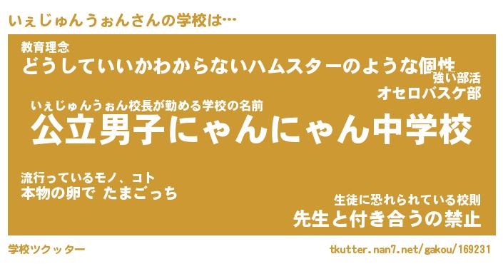 | 先生 | いぇじゅんうぉん先生が勤める学校名『県立ささくれ中学校』 |