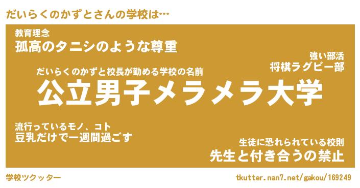 | 男性向けラノベタイトル風あだ名 | 『だいらくのかずとの憂鬱』 |