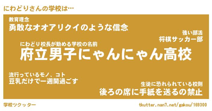 | 意味不明あだ名 | 『ペロリンにわどり』『永久保存にわどり』 |