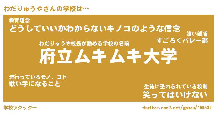 | 肩書あだ名 | 『わだりゅうや社長』『わだりゅうや担任』 |