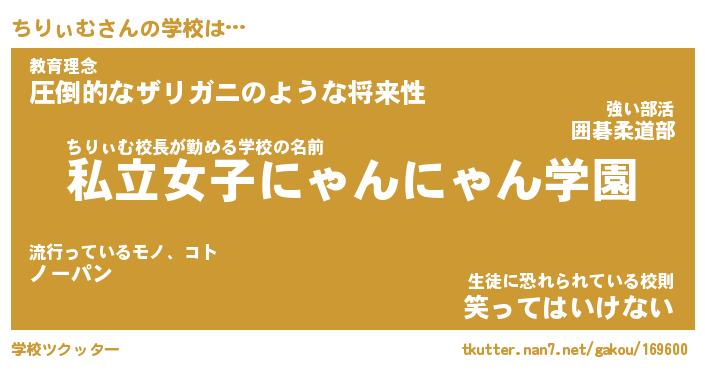 | 意味不明あだ名 | 『ペロリンちりぃむ』『永久保存ちりぃむ』 |