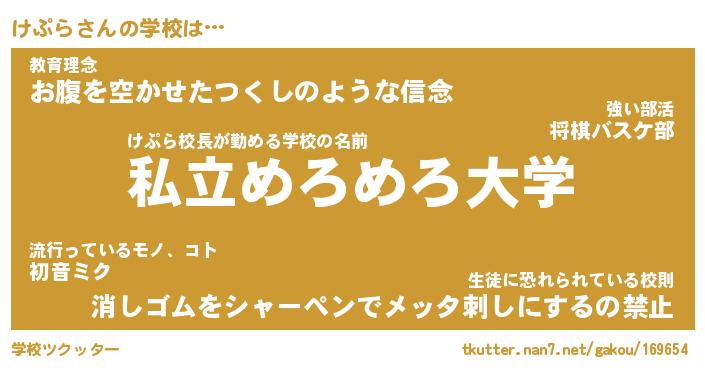 | 男性向けラノベタイトル風あだ名 | 『けぷらの憂鬱』 |