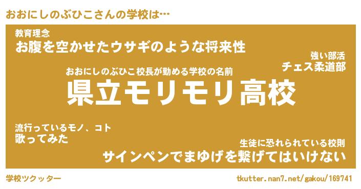 | 男性向けラノベタイトル風あだ名 | 『おおにしのぶひこの憂鬱』 |