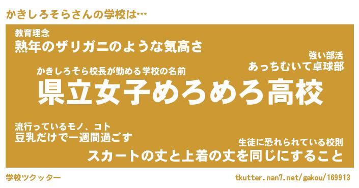 | 男性向けラノベタイトル風あだ名 | 『カキシロソラアートオンライン』 |