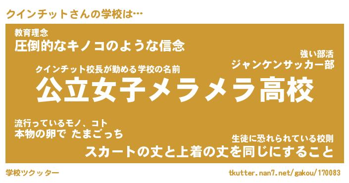 | ヒーロー風カッコイイあだ名 | 『スーパークインチット』『暗黒騎士クイ』 |