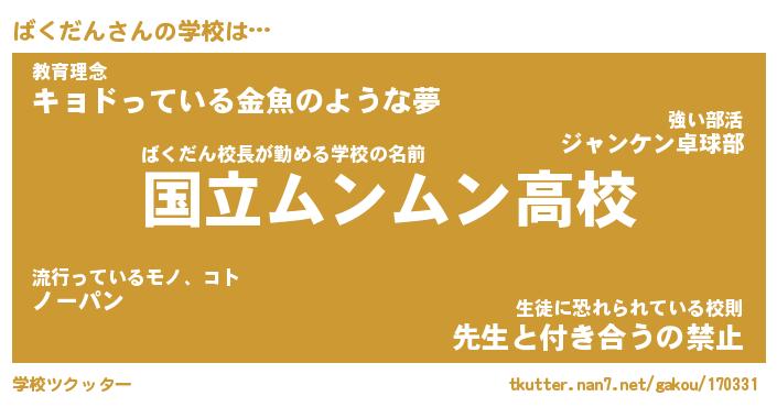 | 男性向けラノベタイトル風あだ名 | 『ばくだんの憂鬱』 |