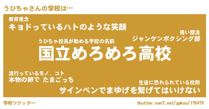 | ヒーロー風カッコイイあだ名 | 『スーパーウヒチャ』『銀牙騎士ウヒ』 |