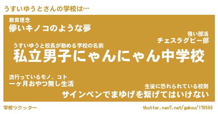 | 男性向けラノベタイトル風あだ名 | 『うすいゆうとの憂鬱』 |