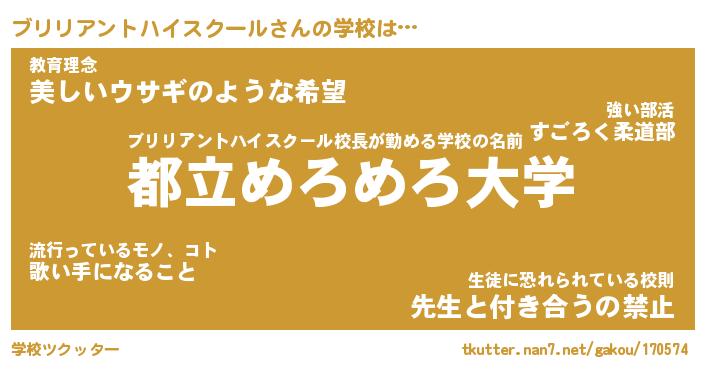 | 男性向けラノベタイトル風あだ名 | 『ブリリアントハイスクールの憂鬱』 |