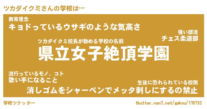 | 男性向けラノベタイトル風あだ名 | 『ツカダイクミアートオンライン』 |