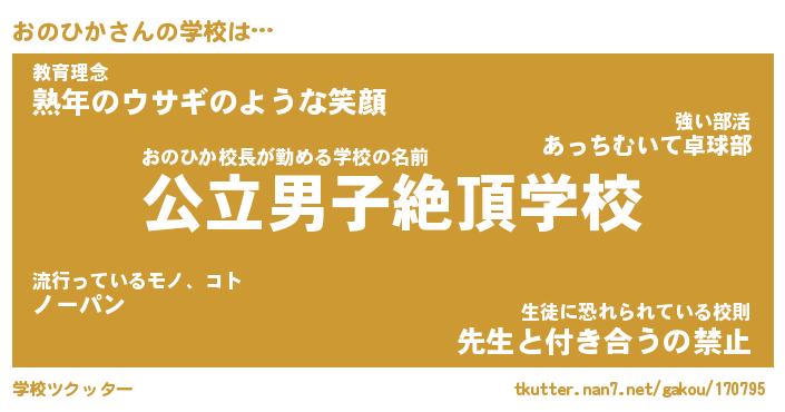 | 男性向けラノベタイトル風あだ名 | 『おのひかの憂鬱』 |