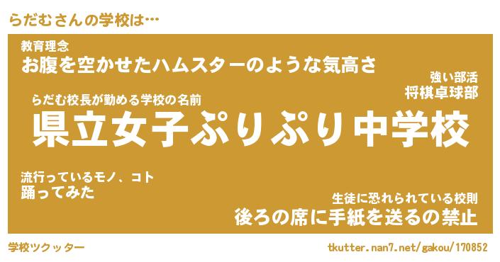| 公立男子ムキムキ中学校は(略 …「」 | 10月03日 07:36 |