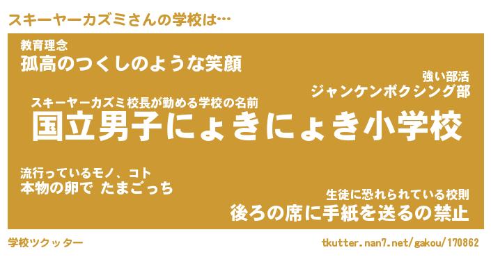 | 男性向けラノベタイトル風あだ名 | 『スキーヤーカズミの憂鬱』 |