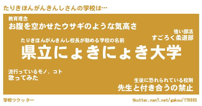 | 男性向けラノベタイトル風あだ名 | 『たりきほんがんきんしの憂鬱』 |
