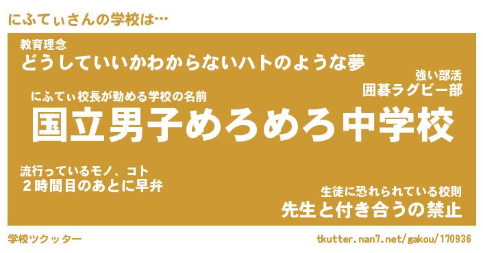 | 男性向けラノベタイトル風あだ名 | 『にふてぃの憂鬱』 |
