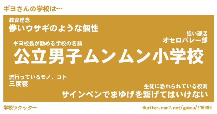 | ピコ太郎風あだ名 | 『ギコ史郎』『ピギ五郎』『ギヨ四郎』 |