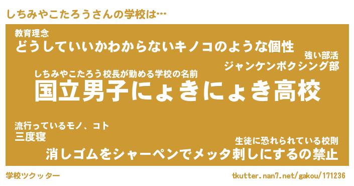 | 男性向けラノベタイトル風あだ名 | 『しちみやこたろうの憂鬱』 |