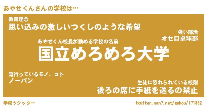 | 伝説のあだ名 | 『伝説のスナイパーあやせくん』 |