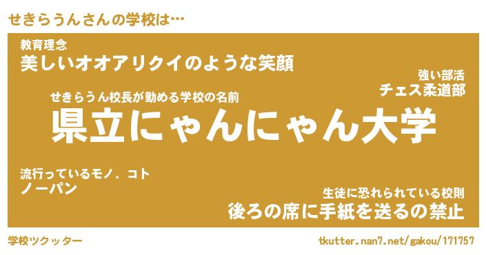 | 男性向けラノベタイトル風あだ名 | 『せきらうんの憂鬱』 |
