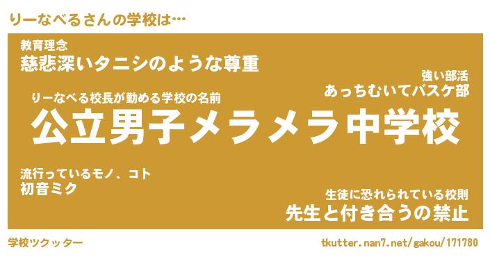 | 先生 | りーなべる先生が勤める学校名『県立猫耳中学校』 |