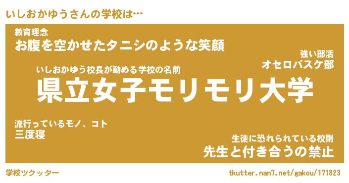 | 女子向けラノベタイトル風あだ名 | 『誰かこのいしおかゆうを説明してください! ~契約から始まるウェディング~』 |