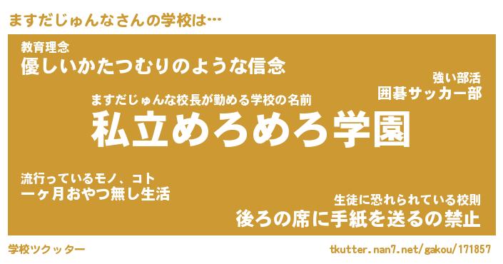 | 女子向けラノベタイトル風あだ名 | 『(仮)ますだじゅんなのやんごとなき事情』 |