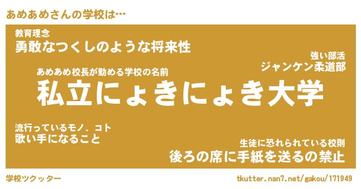 | 意味不明あだ名 | 『ペロリンあめあめ』『永久保存あめあめ』 |
