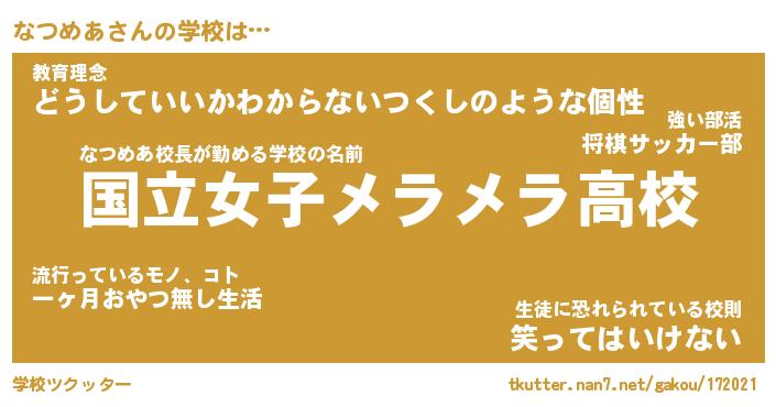 | 意味不明あだ名 | 『ペロリンなつめあ』『永久保存なつめあ』 |