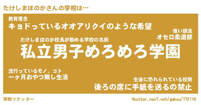 | 男性向けラノベタイトル風あだ名 | 『たけしまほのかの憂鬱』 |