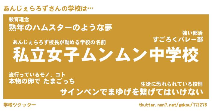 | ヘコむあだ名 | 『あんにゅー』『つくし』『あん太郎』 |