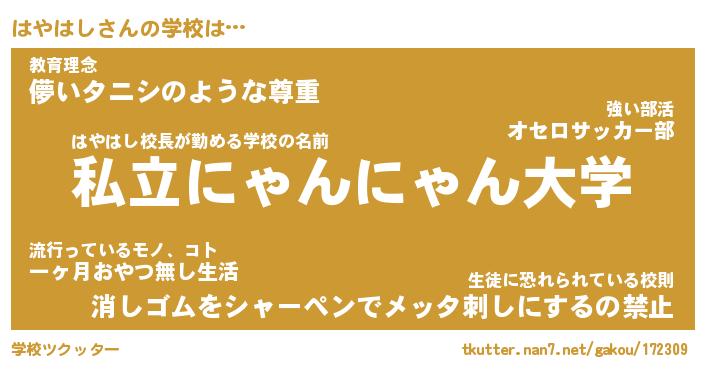 | 意味不明あだ名 | 『ペロリンはやはし』『永久保存はやはし』 |