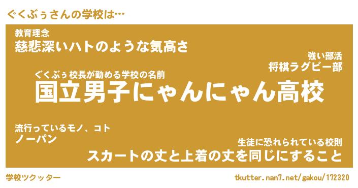 | 男性向けラノベタイトル風あだ名 | 『ぐくぶぅの憂鬱』 |