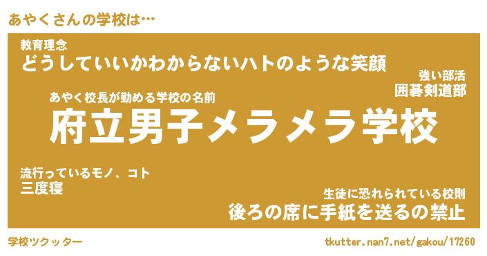 | ヒーロー風カッコイイあだ名 | 『スーパーアヤク』『ウルトラあやくマン』 |