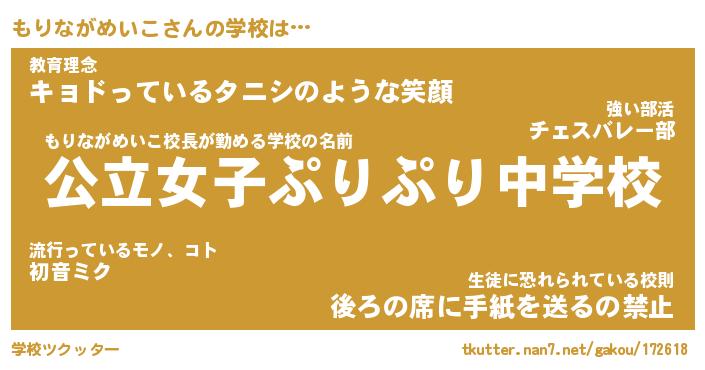 | 胡散臭い通販商品みたいなあだ名 | 『億万長者になれる霊験あらたかなお札…その名も「もりながめいこ」』 |