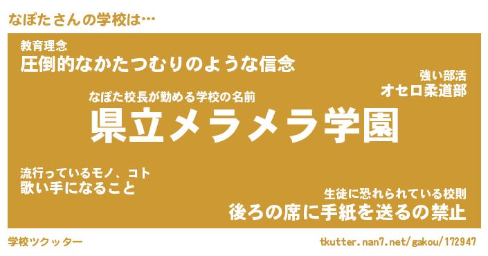 | 男性向けラノベタイトル風あだ名 | 『なぽたの憂鬱』 |