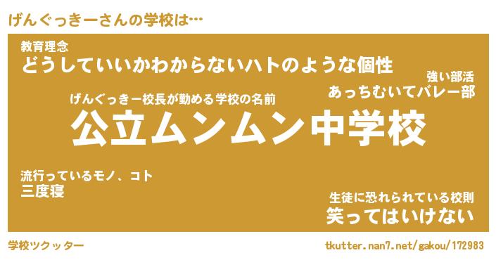 | 男性向けラノベタイトル風あだ名 | 『げんぐっきーの憂鬱』 |