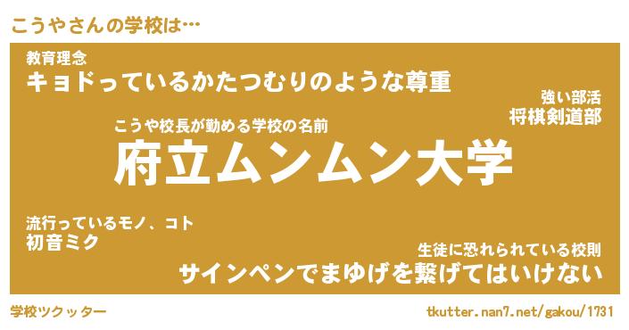 | 男性向けラノベタイトル風あだ名 | 『こうやの憂鬱』 |