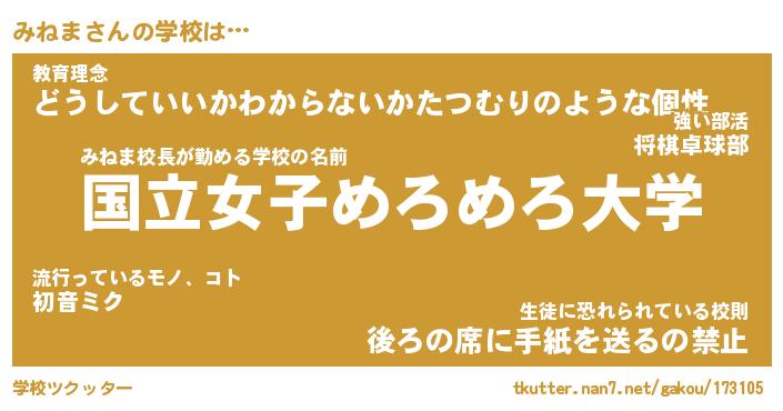 | 2回繰り返すあだ名 | 『みねみね』『みみねね』『うねうね』 |