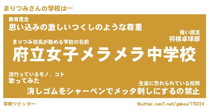 | ヘコむあだ名 | 『まりにー』『つくし』『まり太郎』 |