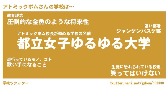 | 男性向けラノベタイトル風あだ名 | 『アトミックボムアートオンライン』 |