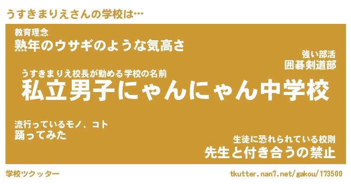| 女子向けラノベタイトル風あだ名 | 『うすきまりえ姫と円卓の騎士』 |