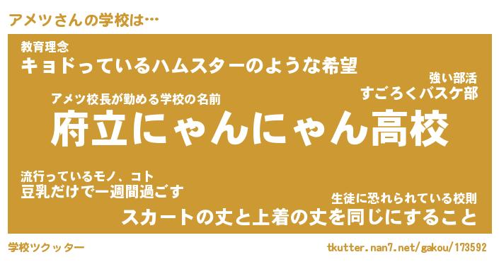 | ヒーロー風カッコイイあだ名 | 『スーパーアメツ』『ウルトラアメツマン』 |