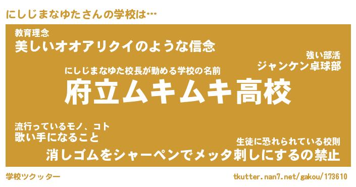 | ポケモン風あだ名 | 『ニシチュウ』『ニシジダネ』 |