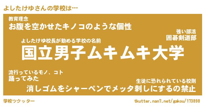 | ヒーロー風カッコイイあだ名 | 『スーパーヨシタケユ』『幻影騎士ヨシ』 |