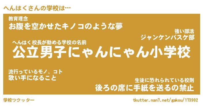 | ピコ太郎風あだ名 | 『ヘコ五郎』『ピヘ六郎』『ヘン二郎』 |