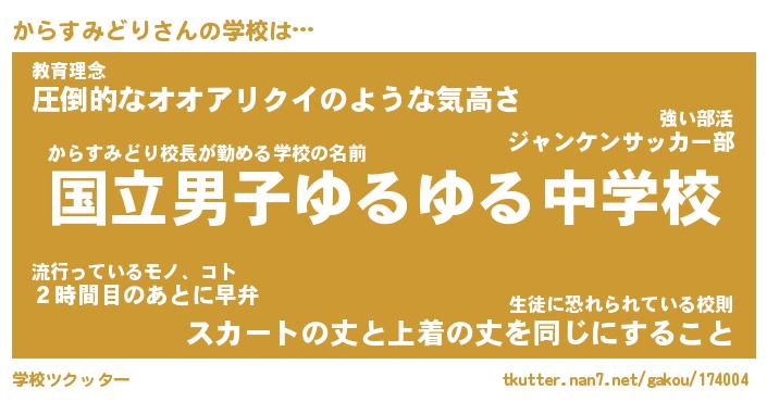 先生 からすみどり先生が勤める学校名『都立しゃくれ中学校