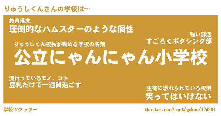 | 男性向けラノベタイトル風あだ名 | 『りゅうしくんの憂鬱』 |