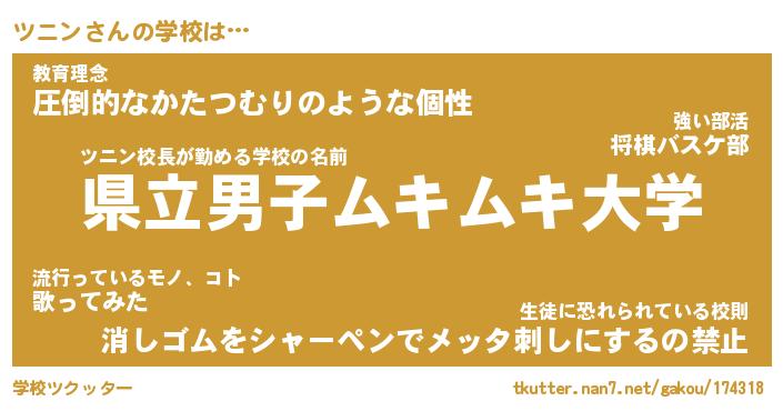 | ヘコむあだ名 | 『ツニにー』『酢こんぶ』『ツニ太郎』 |